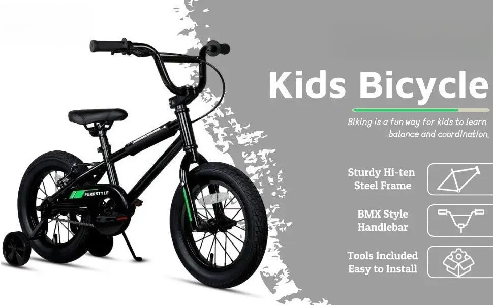 12 14 16 18 Inch Kids Bike BMX Style Bicycle with Training Wheels Coaster Brake