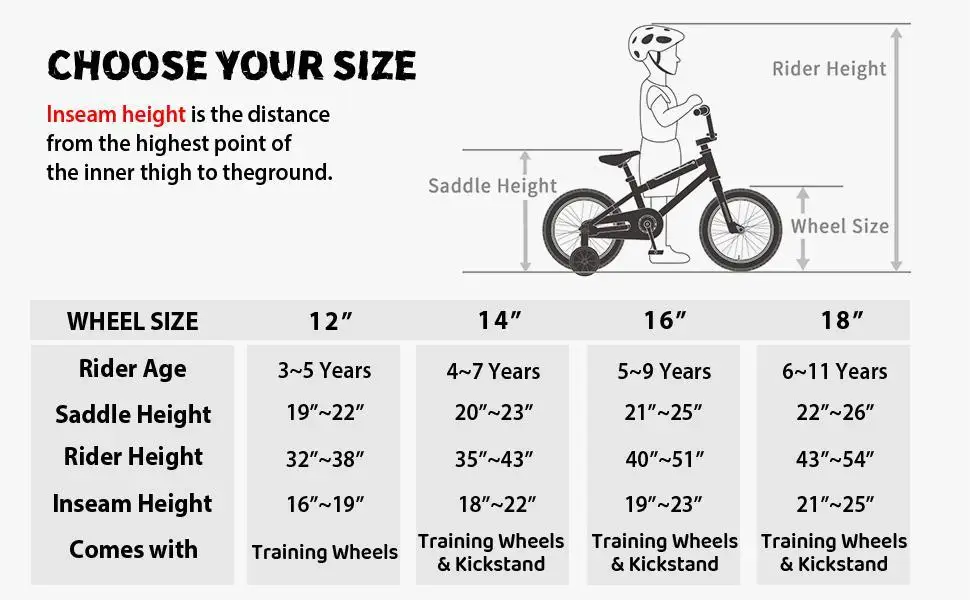 16'' bike: 4 - 8 years old