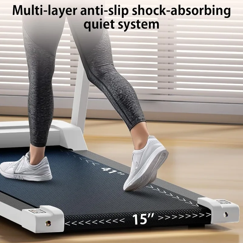 - COMFORTABLE QUALITY: The electric treadmill for home is made of a 15 x 41-inch multi-layer anti-slip shock-absorbing quiet system running belt, providing ample exercise space and a more comfortable experience for your runs. Rated voltage: 110V/50/60HZ. Additionally, the electric treadmill features a non-slip running area that provides a more comfortable exercise experience for you, your family, and even your pets, providing a quiet environment for exercise.