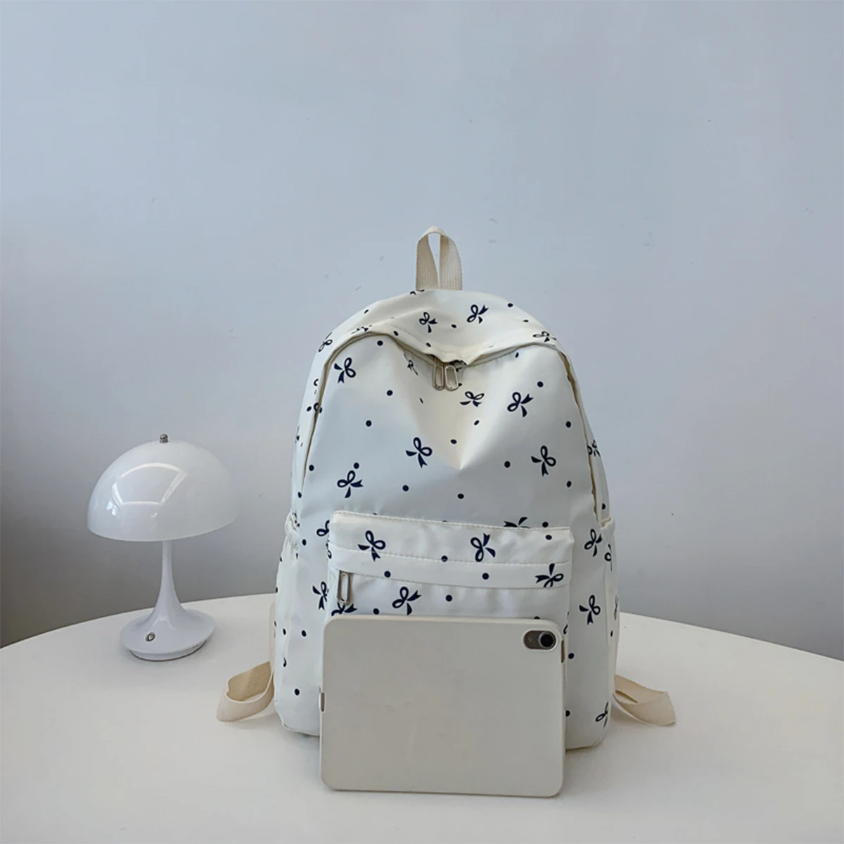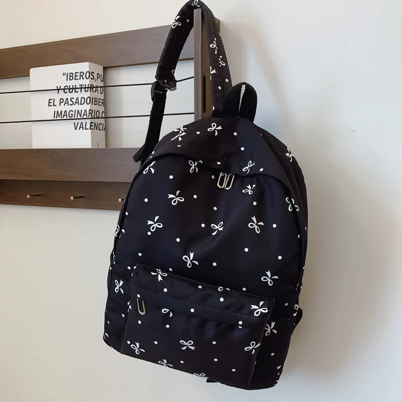 Back To School Backpack Playful Bow Print Bookbag Quilted Comfort and Multi-Pocket Organization System for Women's Campus Life