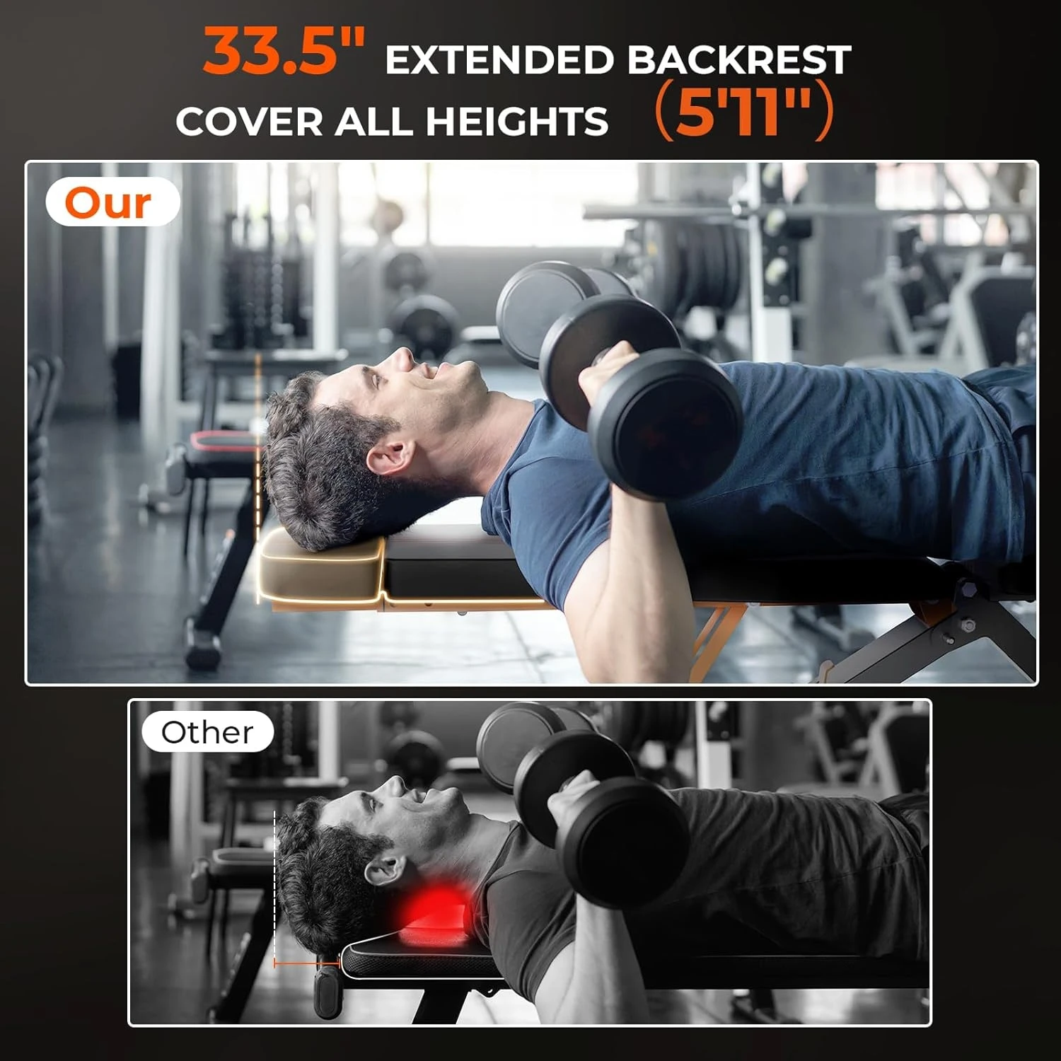 銆怶ithout Wobbling銆慣his foldable workout bench features a 20.5" extended stabilizer and reinforced bolts, giving the incline *