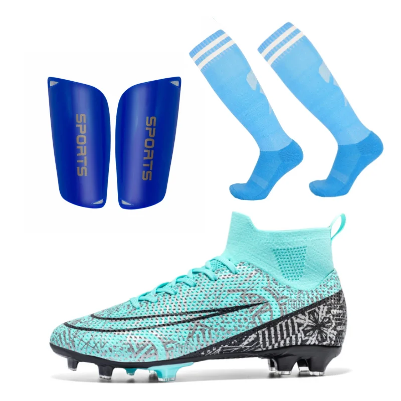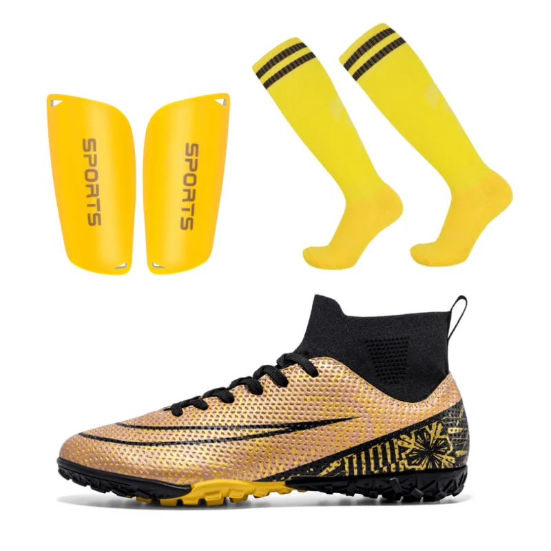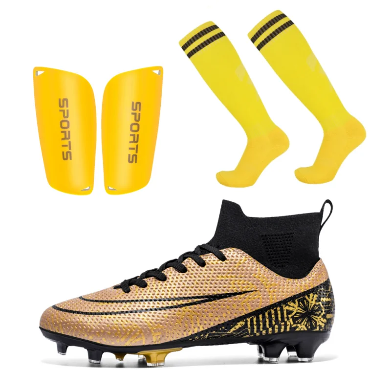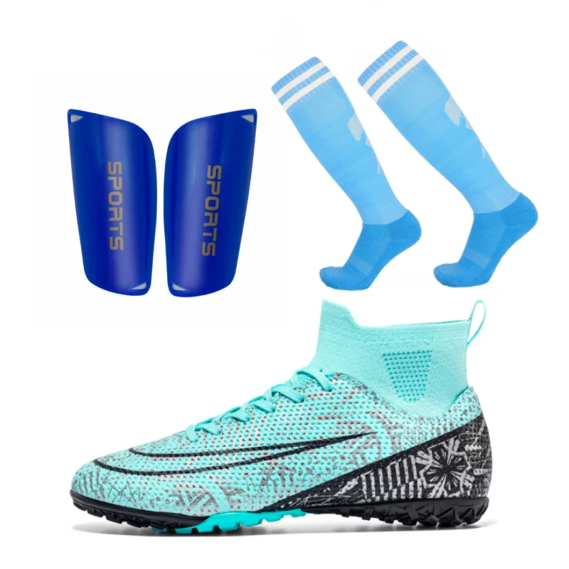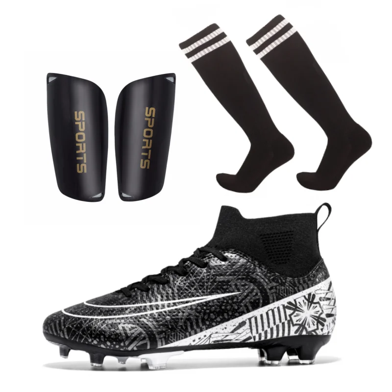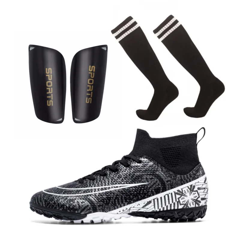 Best Quality Football Shoes//Three In One Set Men's Soccer// Shoes//Sock// Plastic Adult Shin Guard