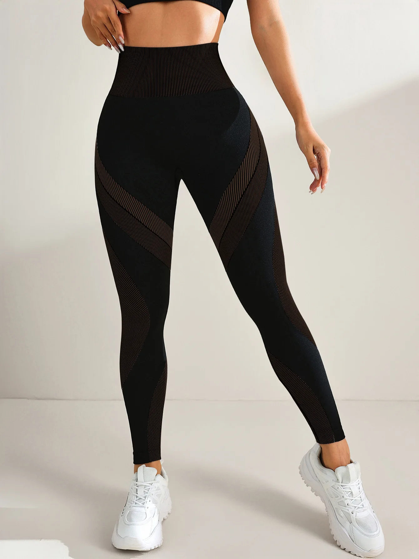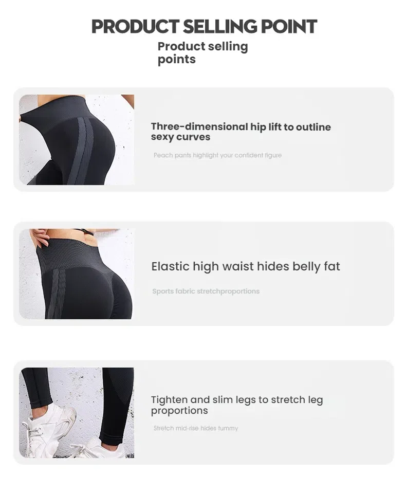Butt Lifting Yoga Pants for Women, High Waisted Seamless Tummy Control Leggings, Side Stripes Fitness Workout Running Joggers, Breathable Compression Tights