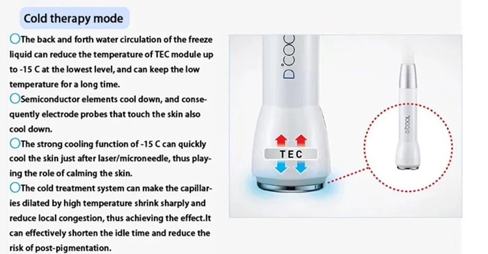 D-cool is a multi-functional device with Heating, Cooling, and Electroporation functions.Heating enables to open pores and cooling helps relax your skin by reducing skin temperature and inflammation after treatments.Also, the electroporation function lets solutions penetrate deep into the skin with significantly more product penetration than Sonophoresis and Iontophoresis.