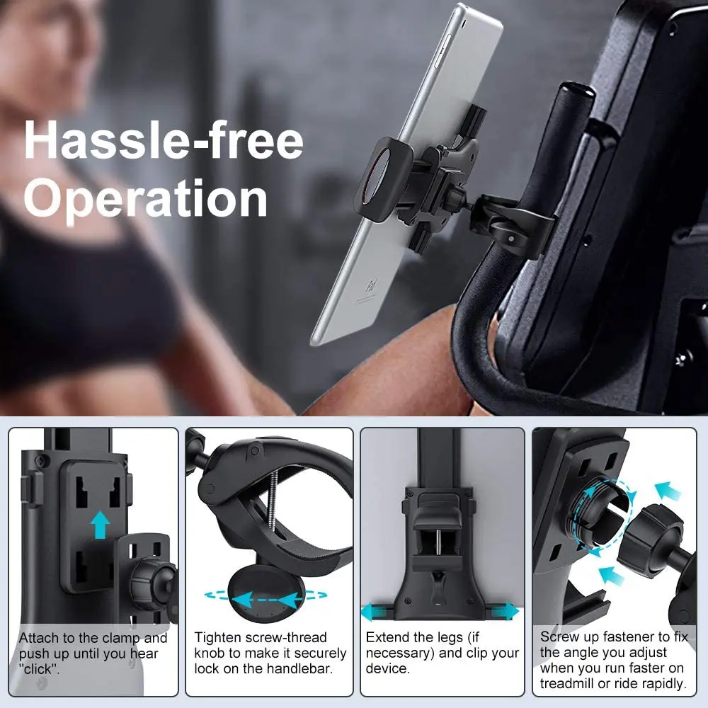 Universal Indoor Gym Treadmill Tablet Holder Bike Bicycle Handlebar Clip Stand Support For iPad Pro Air 5 4 3 Samsung Tablet PC - GilloServ