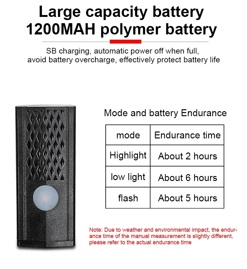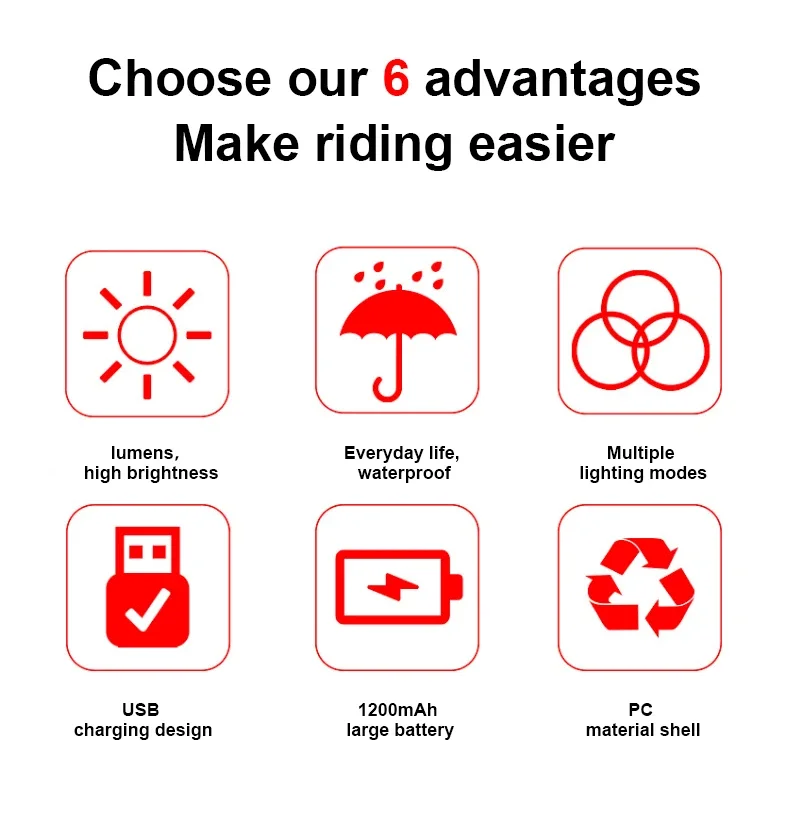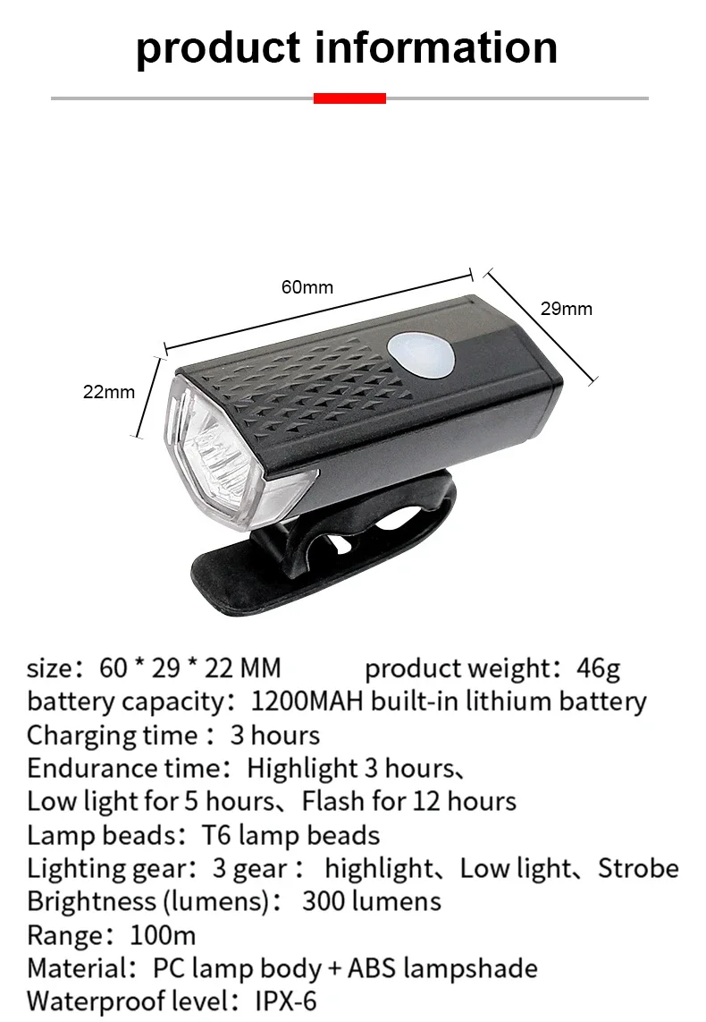 1.Waterproof,Rainproof.Do not soak the bike light into water.