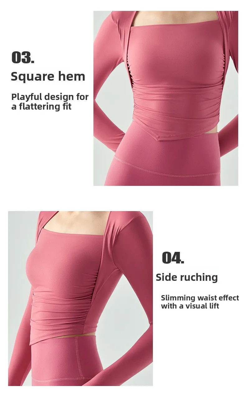 Women's Sport Top Long Sve Yoga Fitn Clothing Slimming Effect f Fixed Waterdrop Cup Yoga Suit Children's Apparel - GilloServ